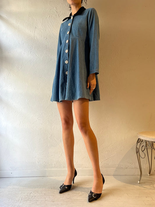 90s 'Mambo' Collared Denim Mini Dress / Medium