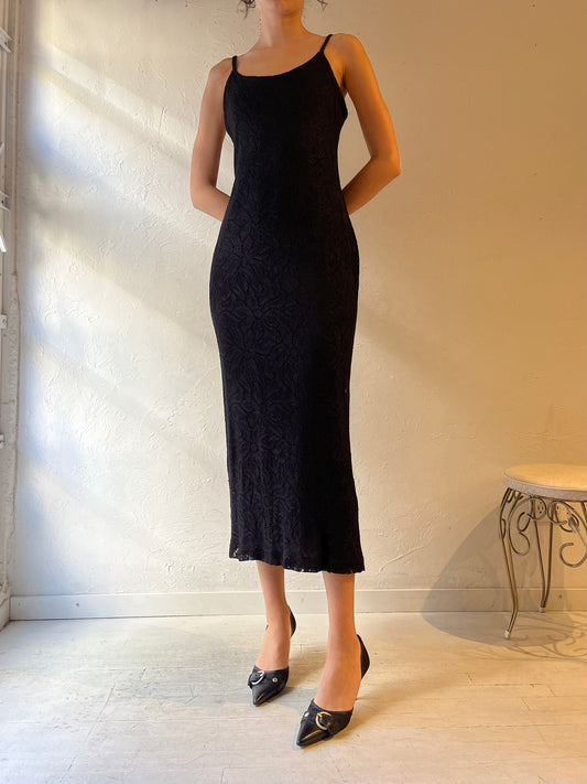 80s ‘Collections’ Black Lace Midi Formal Dress / Medium