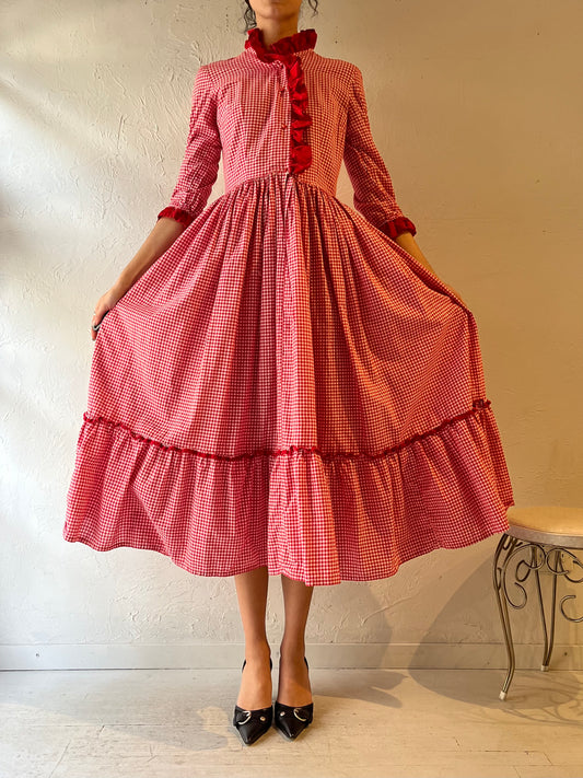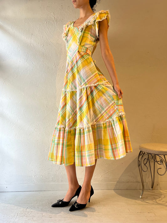 70s ‘Le Voys’ Rainbow Plaid Peasant Midi Dress / Small