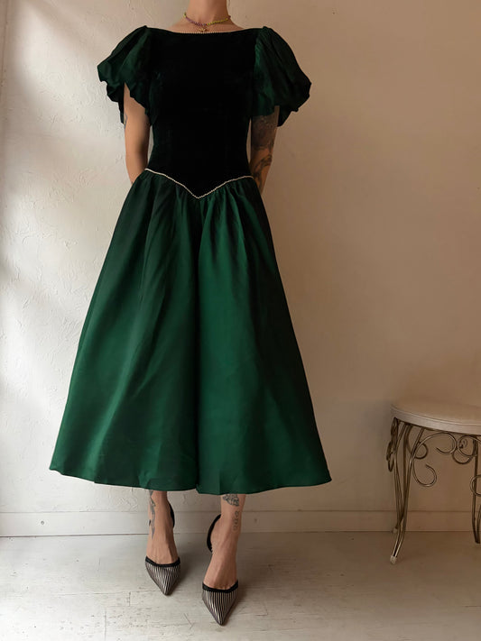 80s 'What's Up' Matallic Green Formal Gown / Small