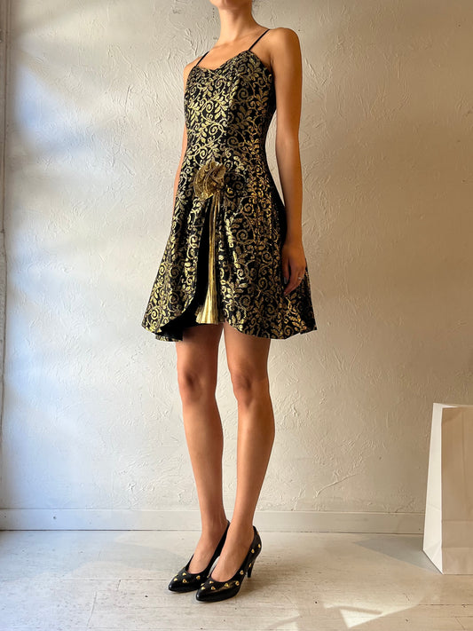 90s 'Collections' Gold Lace Party Dress / Small