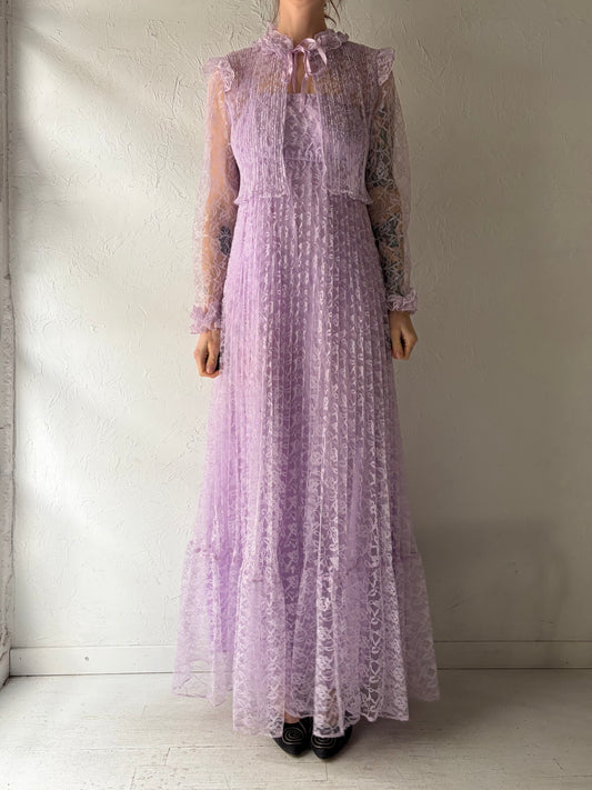 80s 'Vanity Fair' Pink Lacey Maxi Slip Dress / Small