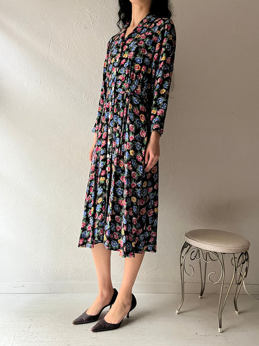 90s 'Nostalgia' Floral Long Sleeve Midi Dress / Small
