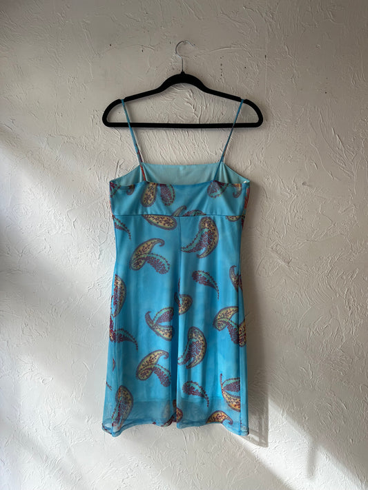 Y2k Blue Paisley Patterned Mini Dress / Medium