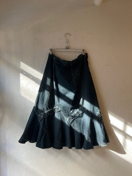 Y2k 'Vex' Embellished Denim Skirt / Large