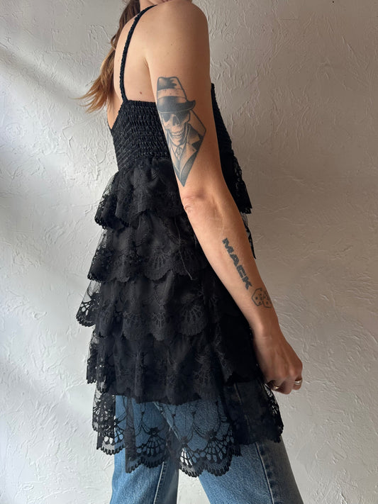 Y2k 'Angela' Black Tiered Lace Ruffle Top / Small