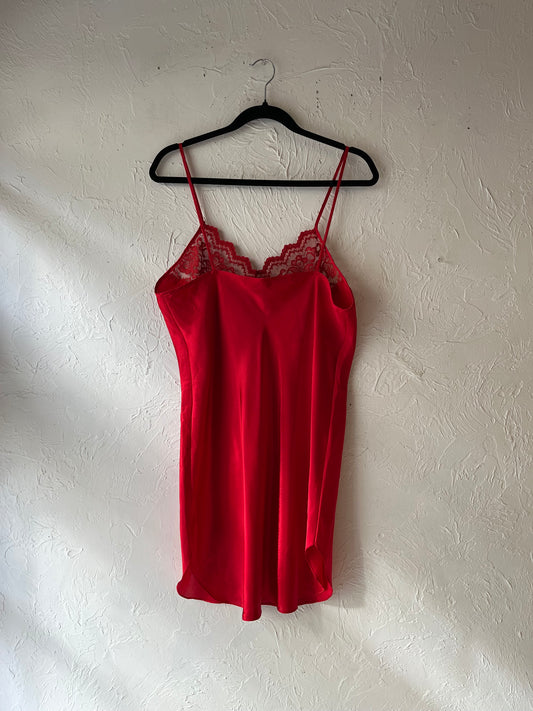 90s Red Mini Slip Dress / Large