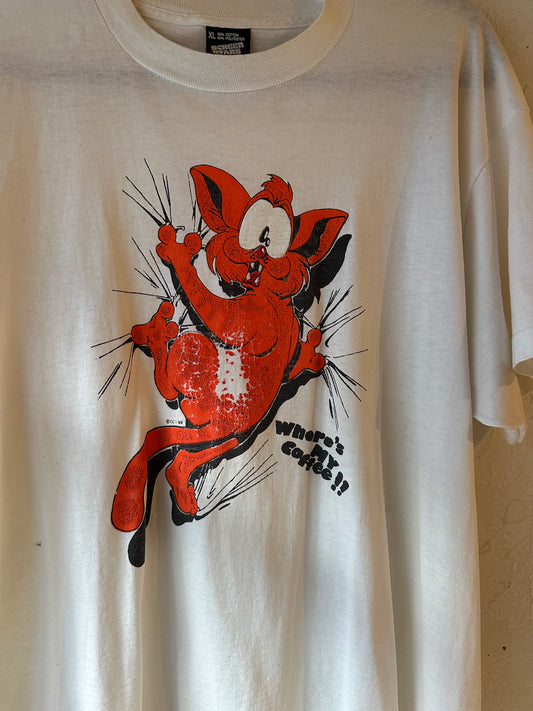 80s 'Screen Stars' Cat Coffee T-Shirt / XL