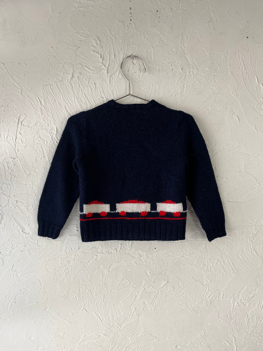 Vintage Kids Knit Train Cardigan Sweater / 2T - 3T