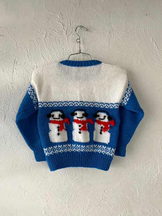 Vintage Kids Knit Snowman Cardigan Sweater / 10