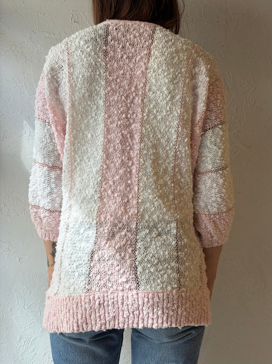 90s 'Eaton' Pink Striped Spring Sweater / Mediu