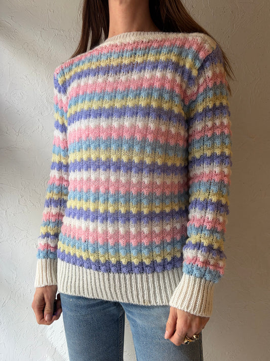 80s 'Liz Moody' Pastel Rainbow Striped Acrylic Knit Sweater / Medium