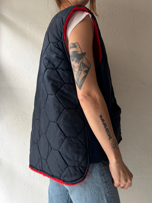 70s 'Artic King' Navy Blue Quilted Vest / XL