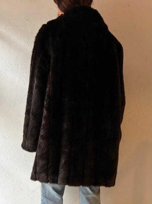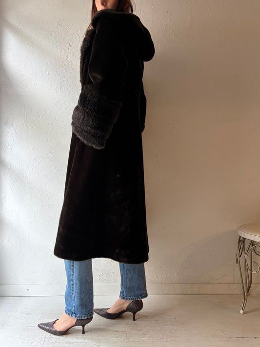 Vintage Hooded Brown Faux fur Coat / Medium
