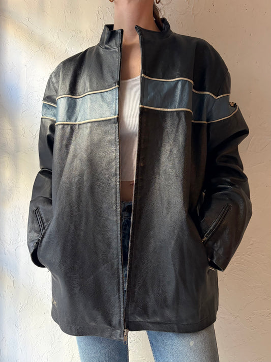 Vintage 'Wai Yin Chen' Embroidered Leather Jacket / Small