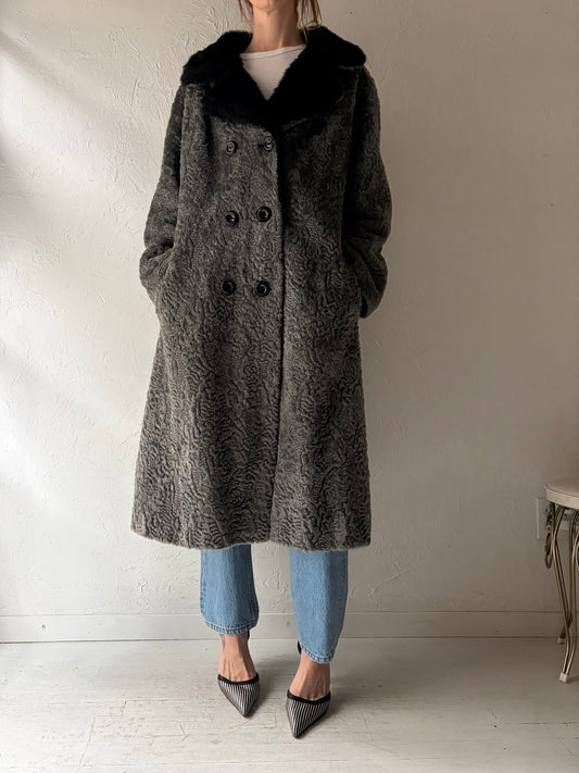 80s Grey Faux fur Coat / Large