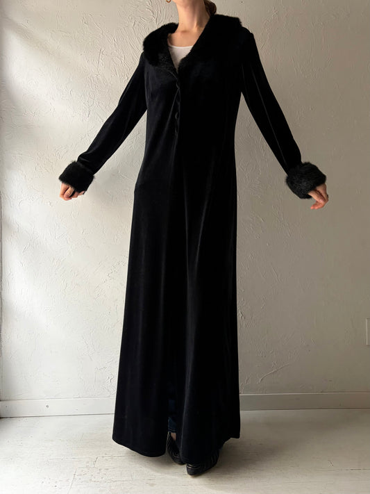 90s 'Onyx Nite' Black Velvet Long Coat / Large