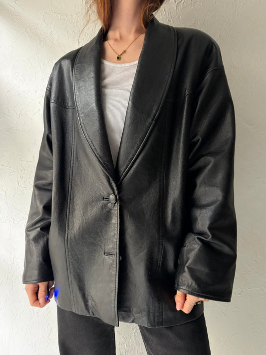80s' Ronnie De Vinci' Black Minimalist Leather Jacket / Medium