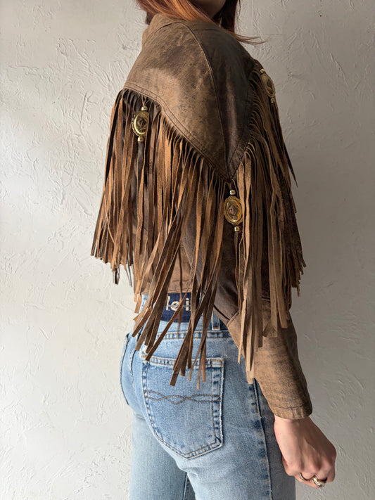 80s 'Pelican Cove' Brown Leather Western Fringe Jacket / Small