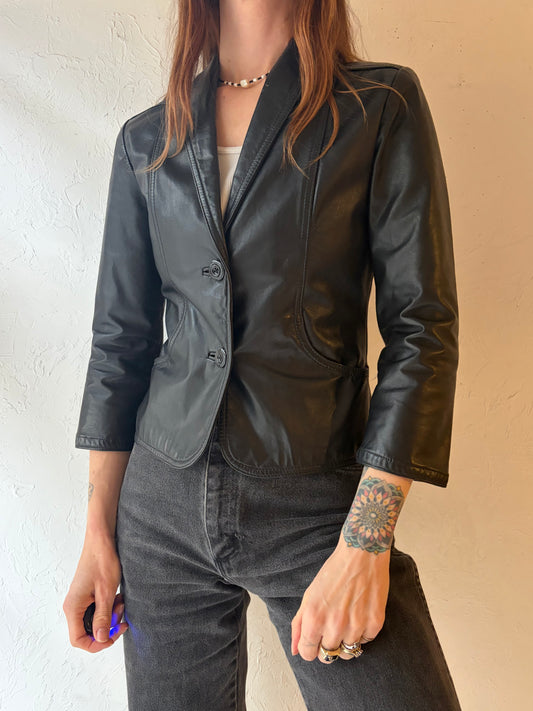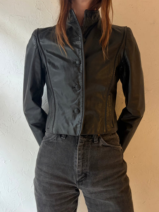 90s 'Fox Moor' Black Minimalist Leather Jacket / Small