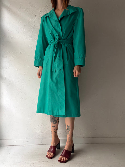 90s 'J. Gallery' Green Trench Coat / Vintage 90s Retro Minimalist Long Rain Jacket / Small