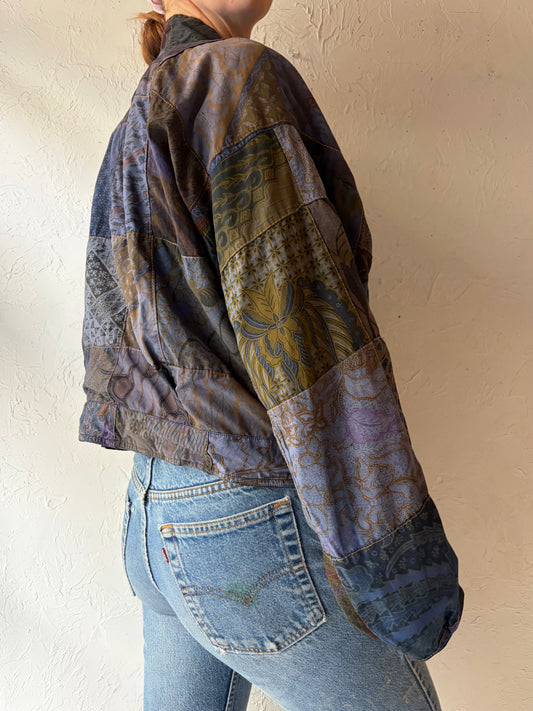 90s 'Asian Creations' Quilted Tapestry Cropped Jacket / Vintage 1990s Cropped Patchwork / Medium