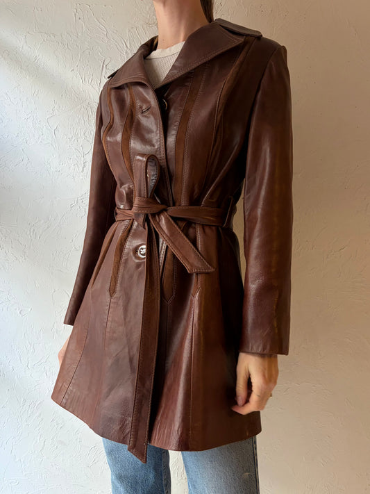 70s 'Skiu Gear' Brown Leather Jacket / Small