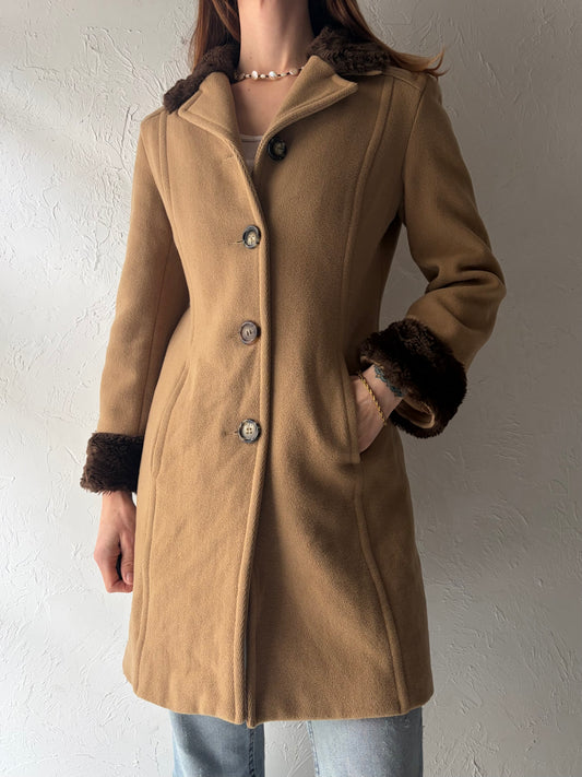 Y2k 'Kookai' Tan Faux Fur Preppy Academia Double Breasted Coat / Small