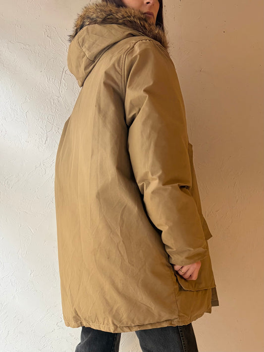 60s 'Woolrich' Retro Goose Down Polar Parka / Vintage 1960s Tan Puffy Artic Winter Coat / Large