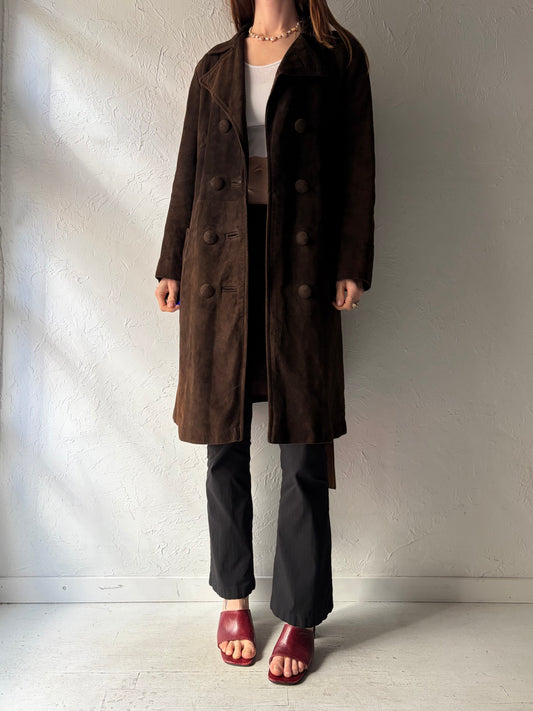 70s 'Kristines' Brown Suede Leather Trench Coat / Medium