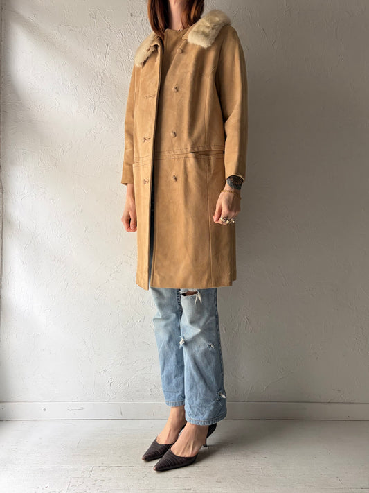 70s Tan Almost Famous Fur Collar Suede Coat / Vintage Penny Lane Style Leather Jacket / Small