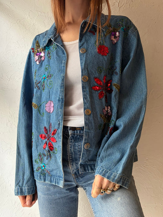 90s 'Tantrum' Beaded Denim Jacket / Medium