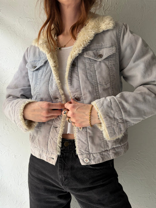 90s 'Arizona' Light Blue Sherpa Lined Corduroy Jacket / Vintage 1990s Workwear Jacket / Medium