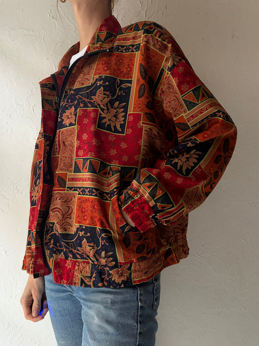 90s 'R&R' Vintage Floral Retro Bomber Jacket / Large