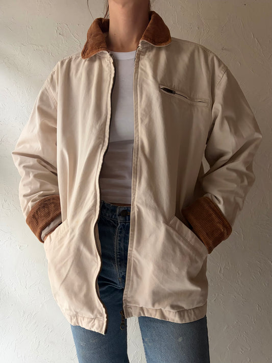 90s 'Cherokee' White Denim Barn Chore Jacket / Small