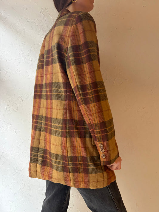 90s 'Linda Allard' Plaid Wool Blazer Vintage 1990s Minimalist Oversized Jacket / Medium