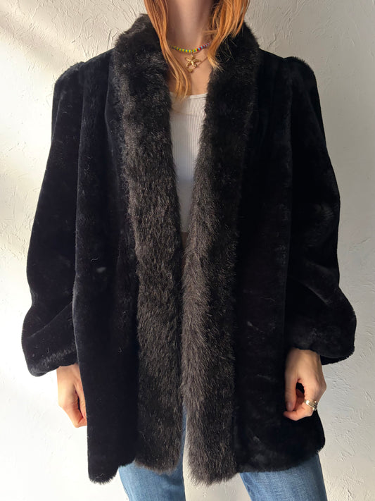 90s 'Jordache' Black Faux Fur Jacket / Medium - Large
