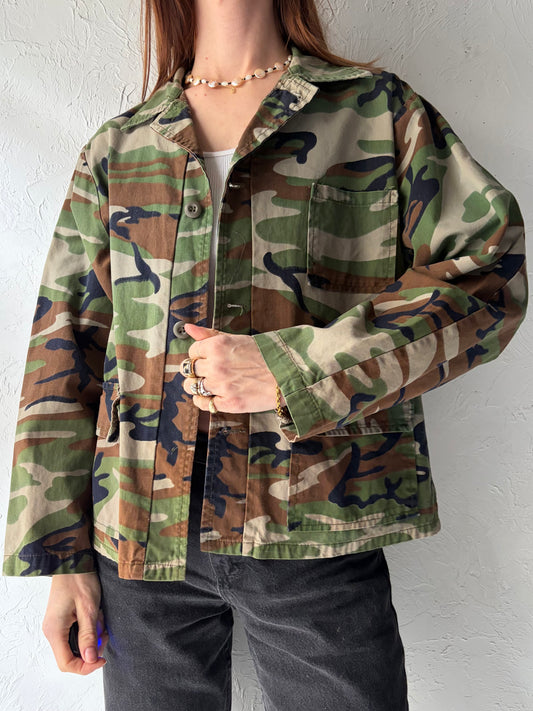 90s 'Gamer Winner' Camo Chore Jacket / Vintage 1990s Camouflage Workwear Streetwear Utility Coat / Medium