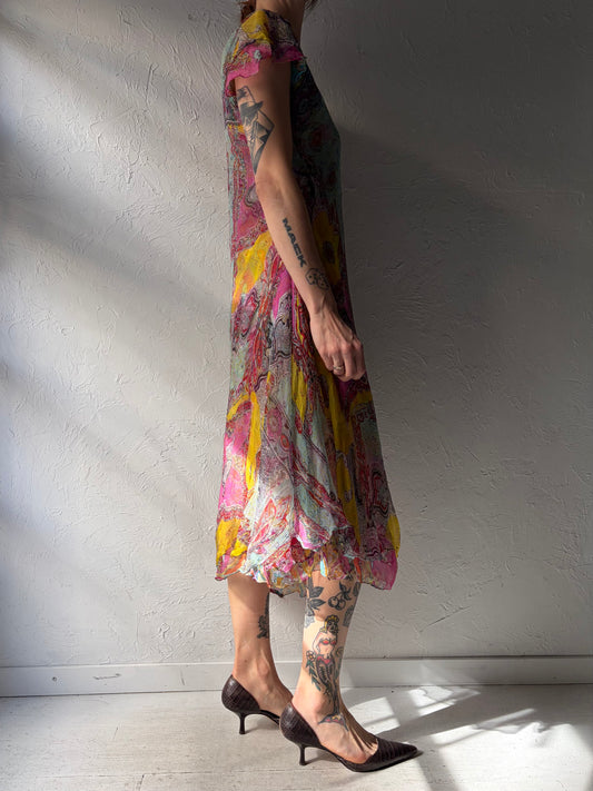 Y2k Vintage Paisley Boho Hippie Summer Maxi Dress / 2000s Flowy Formal Gown / Small
