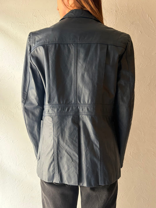 Vintage Minimalist Blue Leather Blazer Jacket / Medium