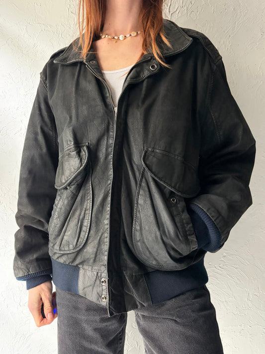 90s ‘Hunt Club’ Black Suede Leather Jacket / Medium