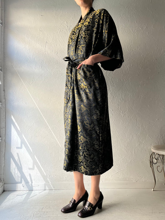 Vintage Dragon Print Robe / Navy Kimono Style Robe / Large