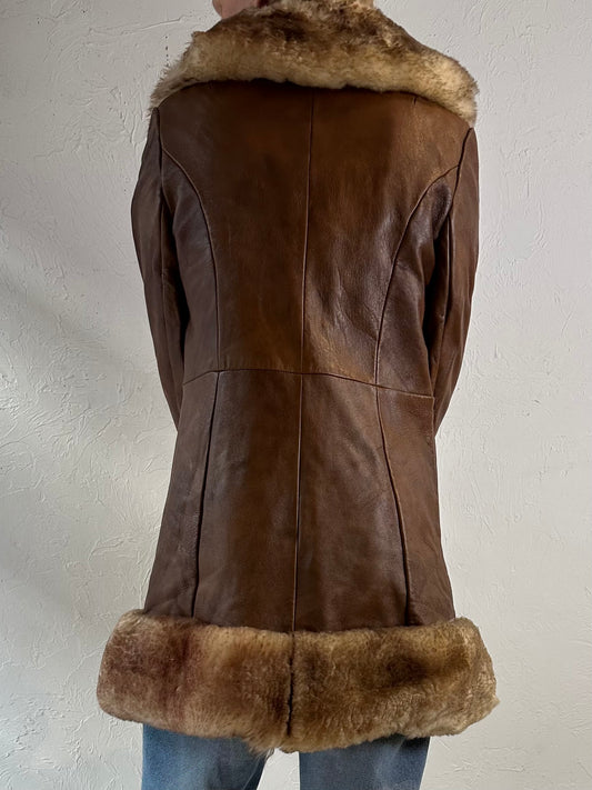80s 'Boutique of Leathers' Leather Jacket with Faux Fur Lining / Large