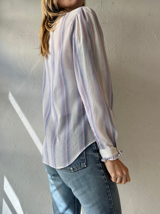 70s 'Freedom' Purple Striped Western Blouse / Medium