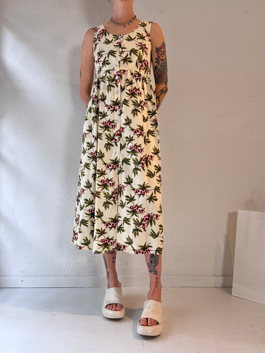 90s 'Ultimate' Floral Print Rayon Dress / Medium