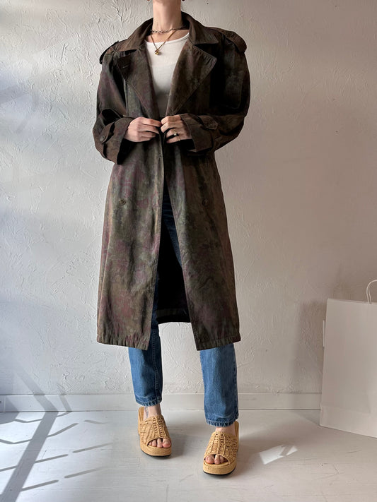 Vintage 'London Fog' Green Floral Light Weight Trench Coat / Medium - Large