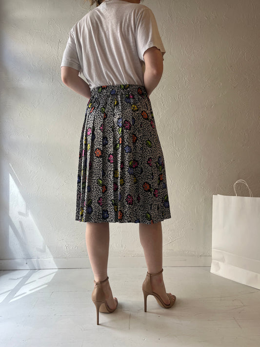 90s 'Caroline Wells' Floral Print Rayon Dress / Medium