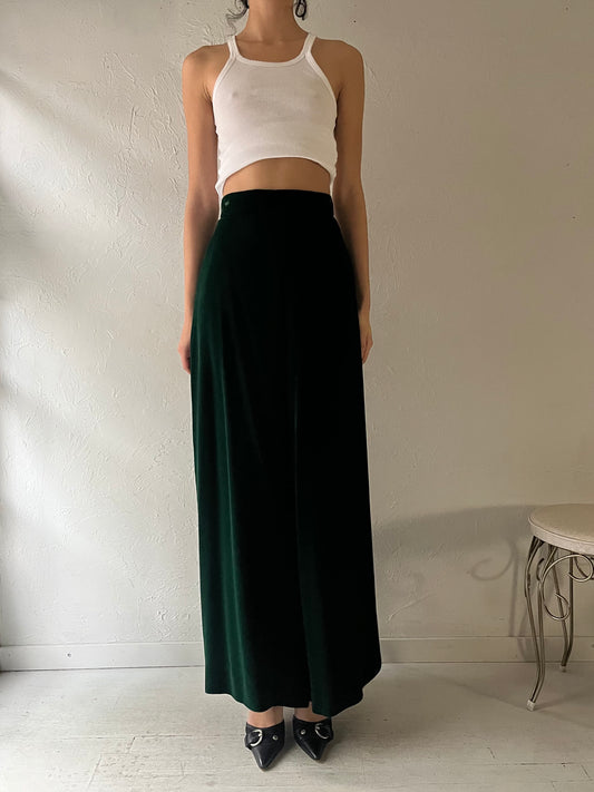 Vintage Dark Green Velvet Maxi Skirt / XS