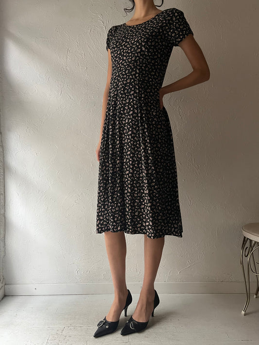 90s 'Timins' Floral Print Rayon Dress / Medium