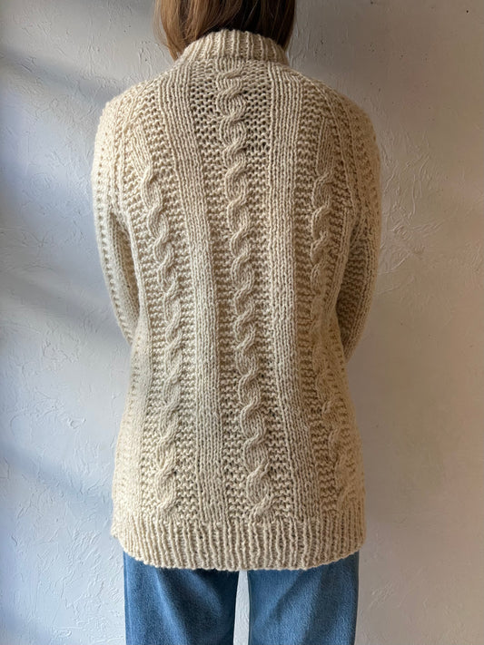 Vintage Cream Wool Cable Knit Fisherman’s Sweater / Large